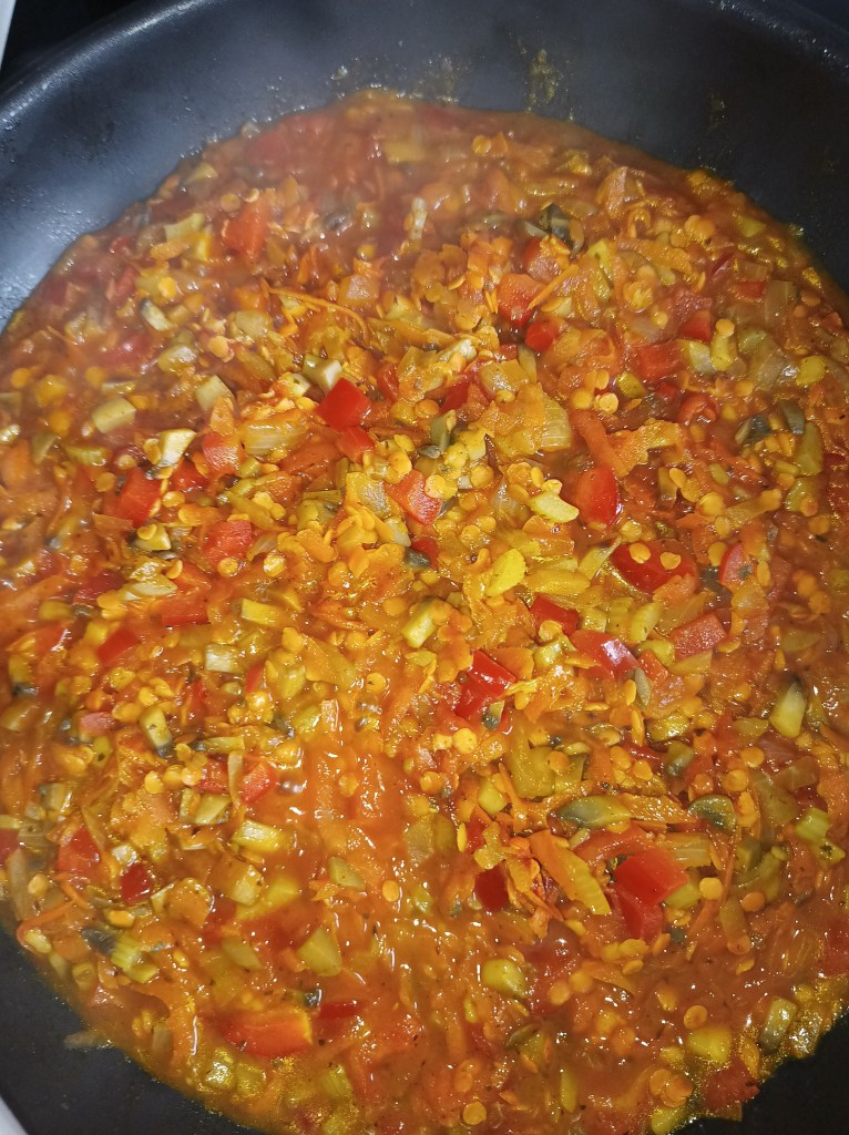 In hindsight we should have used more veg but we needed to go shopping so used what we could.